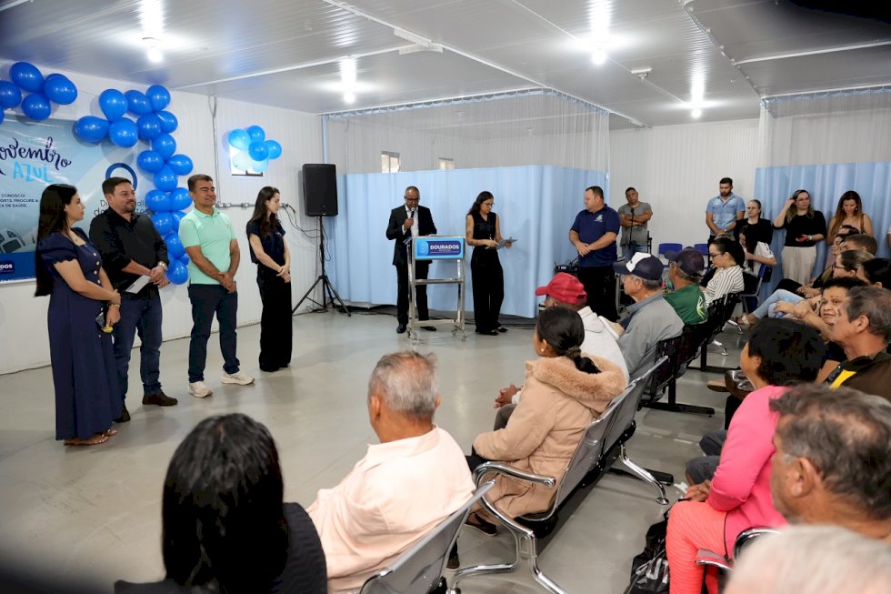 A Prefeitura de Dourados lançou oficialmente nesta sexta-feira (14) a Campanha Novembro Azul, convocando os homens do município a buscarem cuidados de saúde de forma contínua e não apenas diante de sintomas ou situações agravadas. O evento ocorreu no Posto de Assistência Médica (PAM) e reuniu o prefeito Marçal Filho, o secretário municipal de Saúde, Márcio Figueiredo, coordenadores de unidades e pacientes.