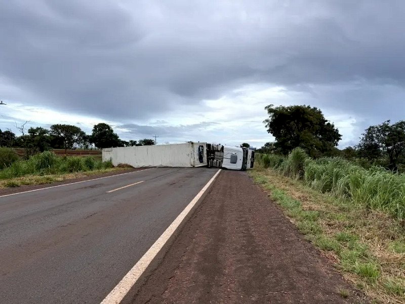Um acidente registrado na tarde de sexta-feira (13) causou a interdição completa da rodovia MS-134, no trecho localizado em Nova Andradina. Uma carreta frigorífica tombou e ficou atravessada na pista depois de se envolver em uma colisão com um Jeep Compass.