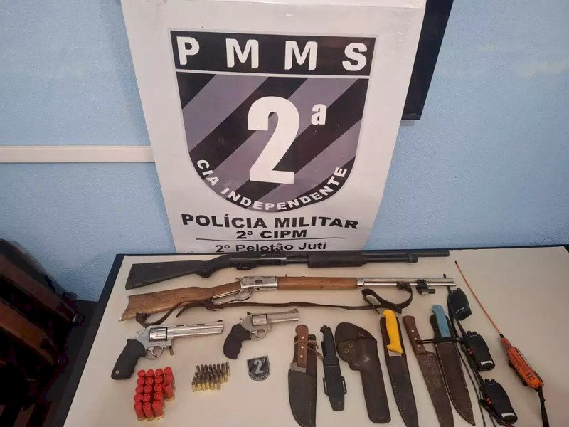 Quatro homens foram presos neste domingo (11) após uma caçada ilegal terminar com um disparo acidental que deixou um deles ferido, em uma fazenda na zona rural de Juti, município localizado a 311 quilômetros de Campo Grande. A ação foi registrada pela Polícia Militar.