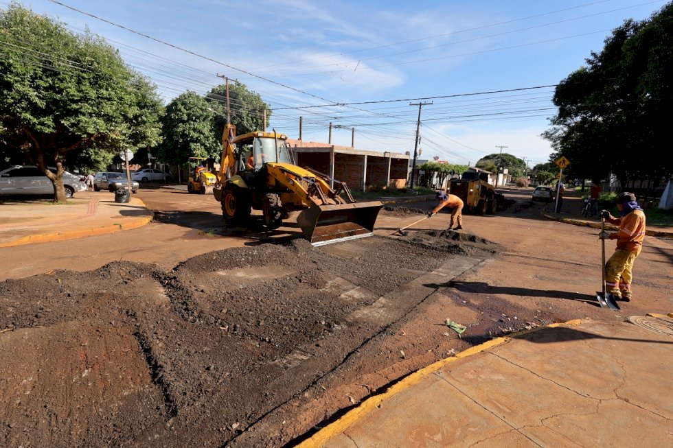 Prefeitura intensifica recuperação asfáltica e avança em quatro bairros de Dourados